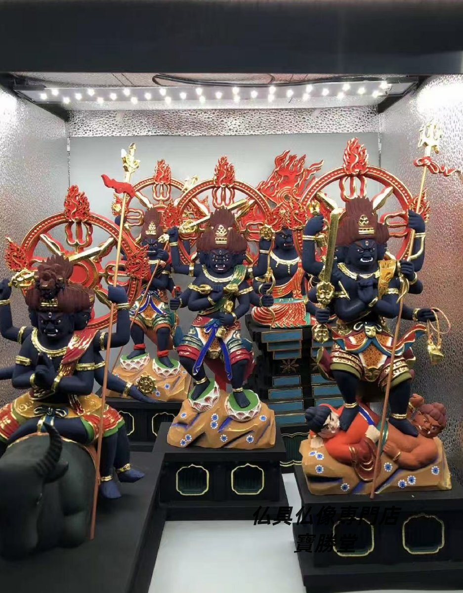 - 木彫仏像 仏教美術 精密細工 仏師で仕上げ品 総檜材 彩色 彩繪 切金 五大明王像一式 【送料無料】【仏具仏像専門店寶勝堂】