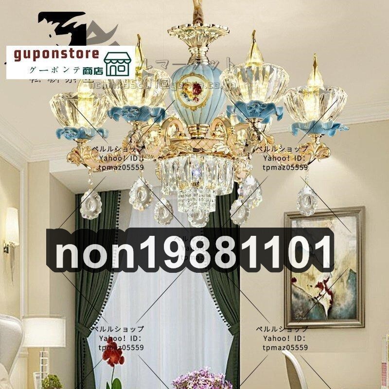 - リビングシャンデリア欧風クリスタルシャンデリア贅沢大気青色レストラン寝室ライト贅沢家庭用豪華別荘照明器具6灯
