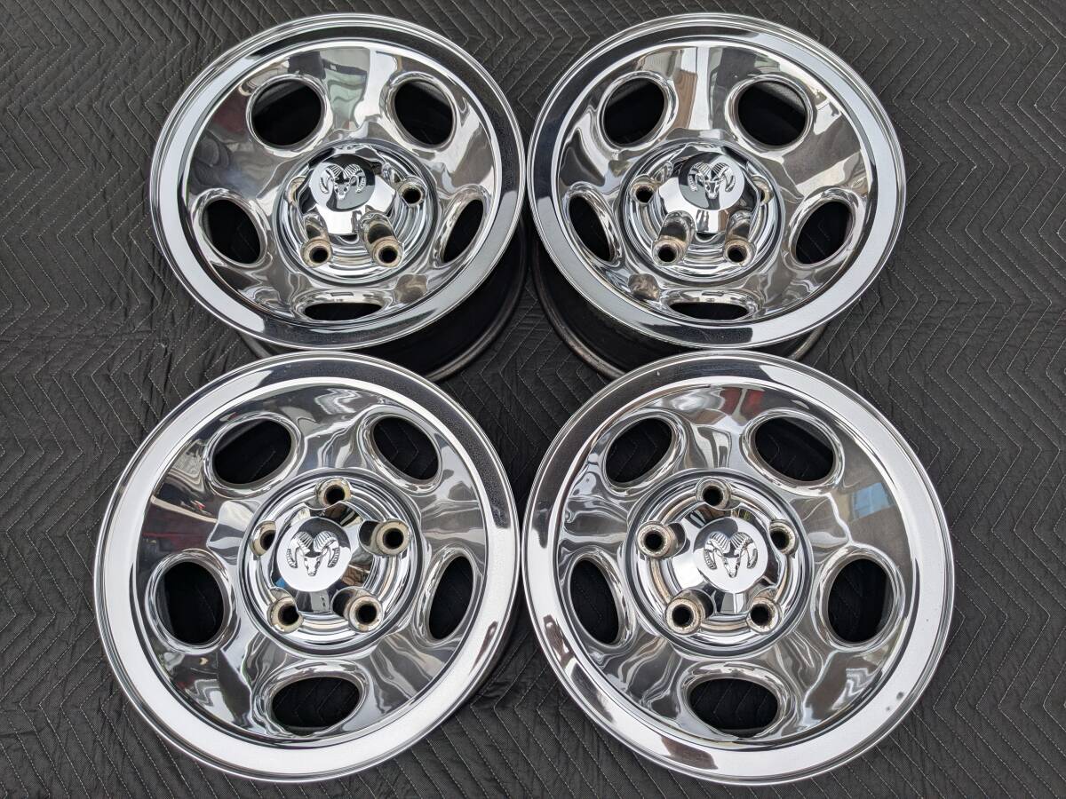 - 純正 ダッジ ラム バン クロームメッキ 15インチ スチールホイール 4本 PCD139.7 5穴 15X7 5X5.5 センターキャップ付