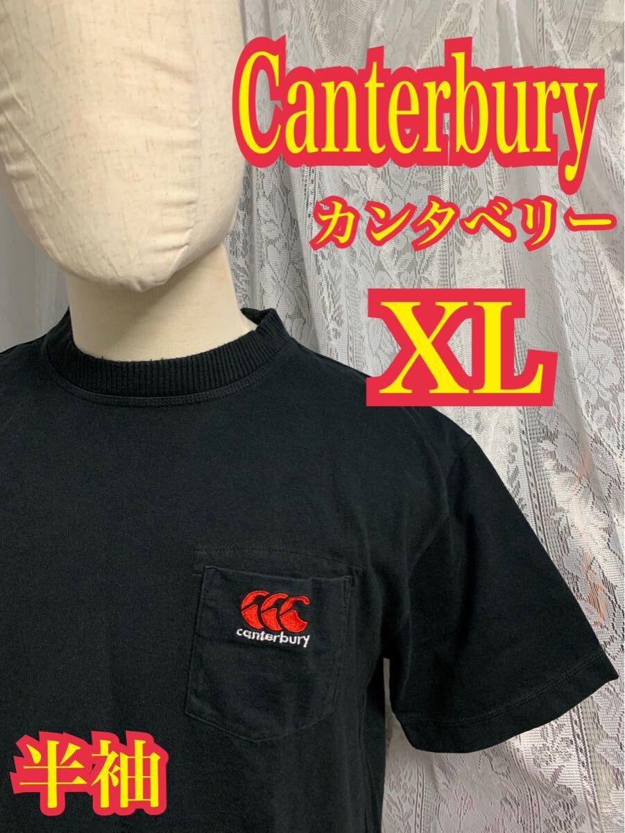 - Canterbury カンタベリー 半袖 Tシャツ ラグビー 刺繍ロゴ 黒 XLサイズ