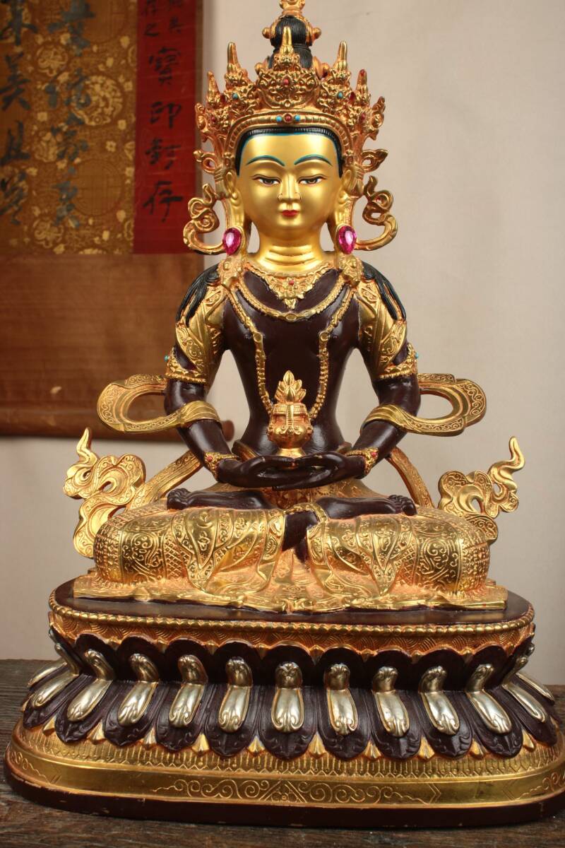 - 「仏教古美術 古銅塗金彫 手工精修 彩絵 長寿仏 度母 宗教密教 居家供奉 仏像」時代物 古董品 骨董 旧家蔵出し 唐物 中国古玩 古美術品