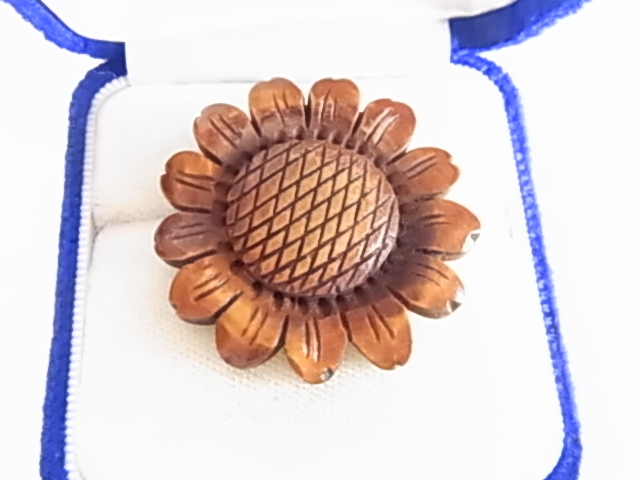 - □ビンテージ/ヴィンテージ 木製 ウッド ひまわりモチーフ 向日葵 コーヒーチョコレートブラウントーン レトロの素敵なブローチ