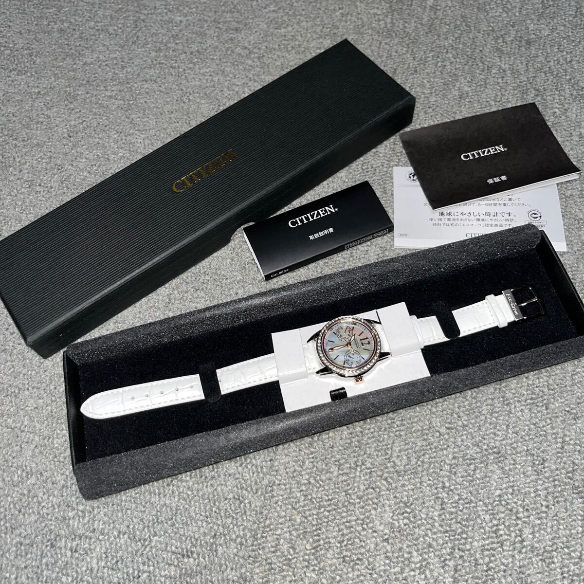 > シチゼン CITIZEN 腕時計 クォーツ シェル文字盤 ホワイトベルト 時計 Eco-Drive 太陽光充電式 新品未使用 箱、説明書完備
