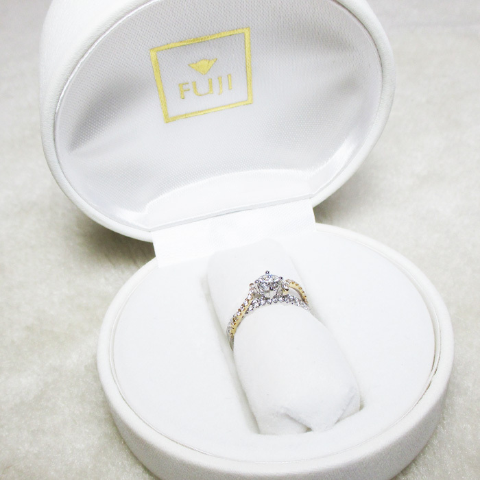 > ラウンドブリリアントカット ダイヤモンドリング K18WG×K18YG コンビ D0.445ct H VVS2 GOOD グレーティングレポート有 指輪 9号 美品