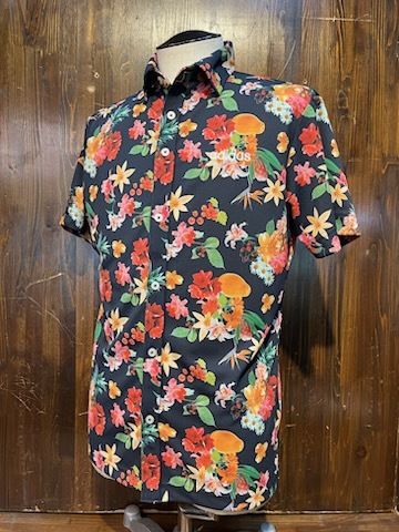 - L301 メンズ シャツ adidas アディダス 半袖 花 柄 総柄 ドライ ゴルフ スポーツ ネイビー 紺 / M 全国レターパック配送