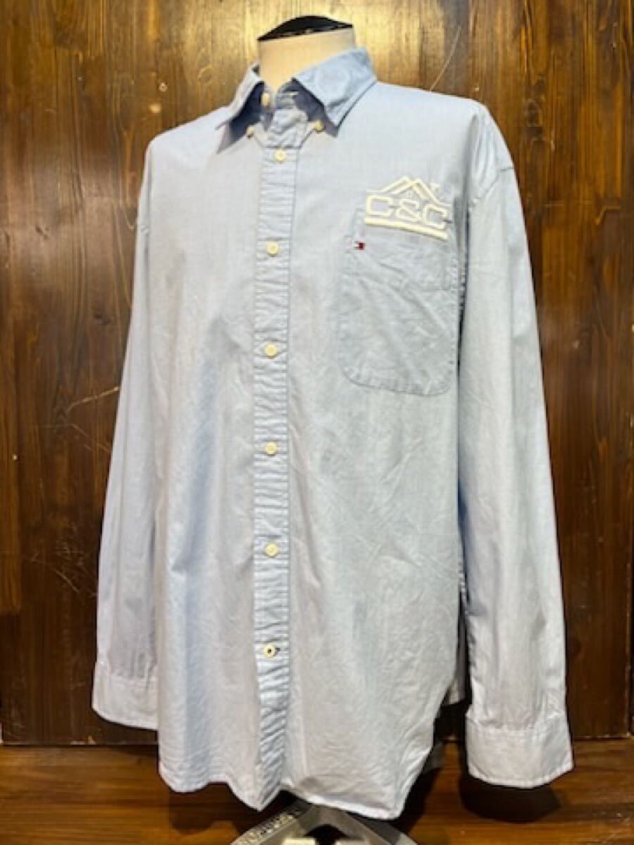 - L473 メンズ シャツ TOMMY HILFIGER トミー ヒルフィガー 長袖 刺繍 ブルー アメカジ カジュアル 古着 大きいサイズ / XL レターパック発送