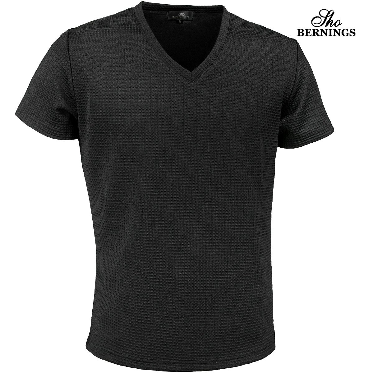 > 342042-90 Tシャツ Vネック ふくれワッフル シンプル 半袖 無地 mens ファッション おしゃれ メンズ(ブラック黒) きれいめ カジュアル XL