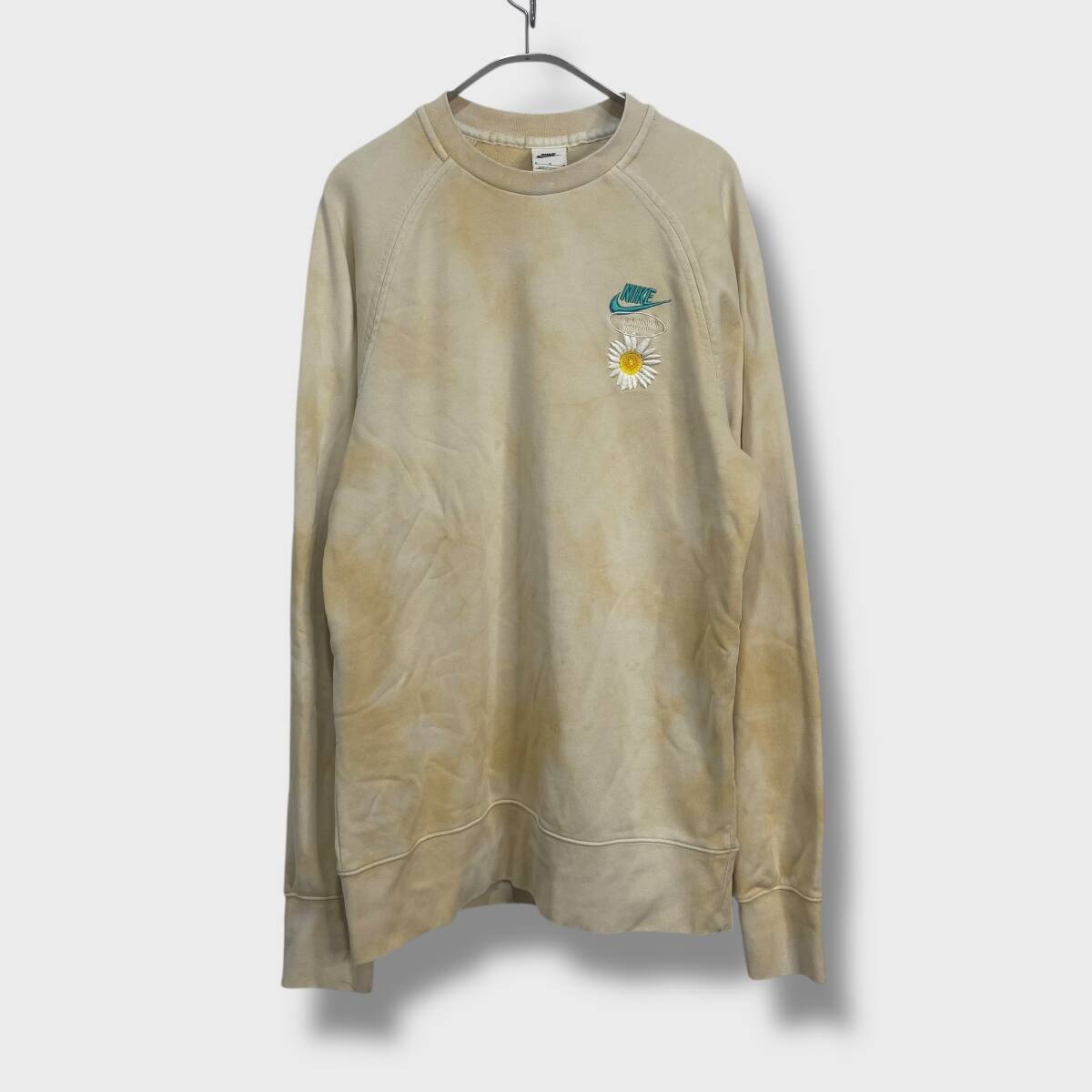 - 送料無料☆NIKE☆ナイキ☆フラワーグラフィック刺繍スウェット☆タイダイ柄☆ラグランスリーブ☆黄色☆M☆F25M