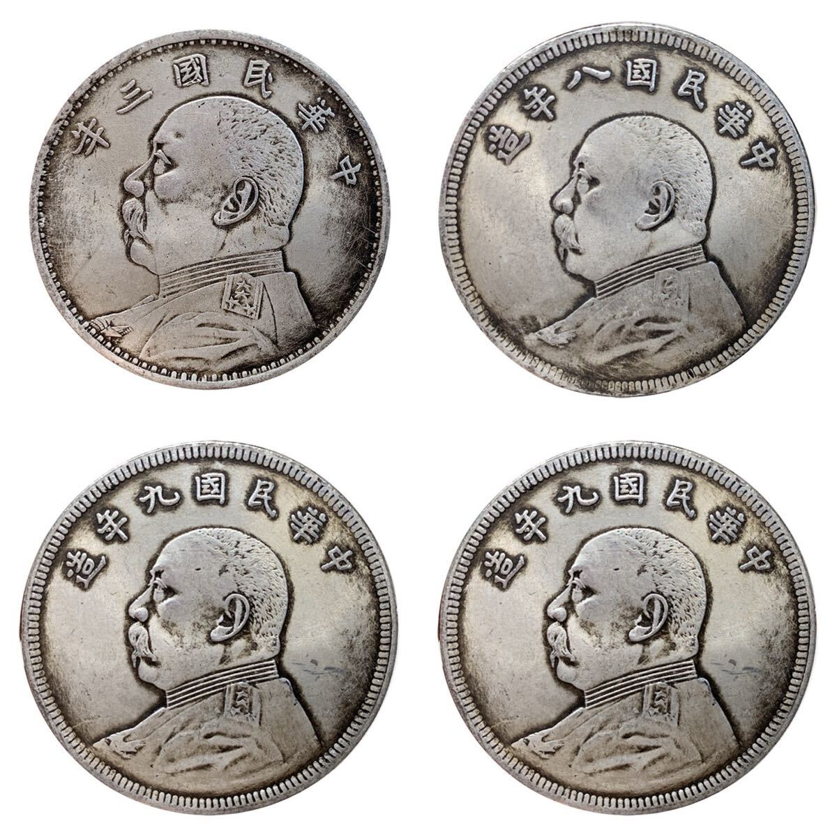 > お得!! 4枚 伍圓 中国 古銭 中華民国3年 8年 9年 10年 袁世凱 人物記念硬貨 大型銀貨 一円銀貨 外国硬貨 貿易銀 直径約45mm 重さ約37.4g