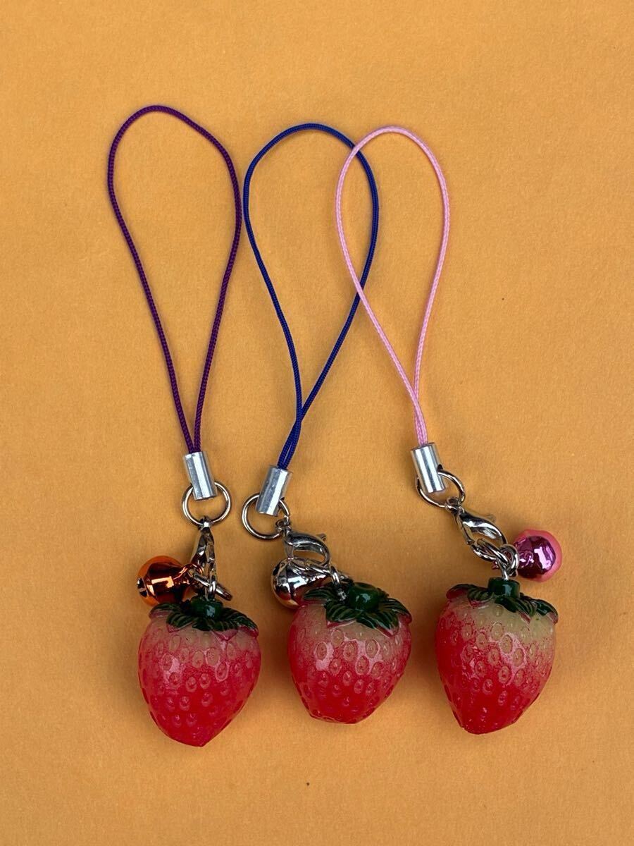 - ★苺のストラップ 3個セット★イチゴ いちご 根付け ストラップ アクセサリー チャーム 果物 キーホルダー マスコット 赤色 レッド 可愛い