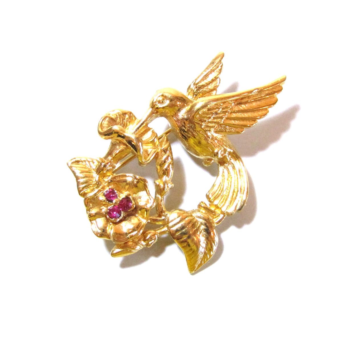 - USA AVON Vintage エイボン アメリカ ハチドリ ブローチ ゴールド ヴィンテージ フラワー 花