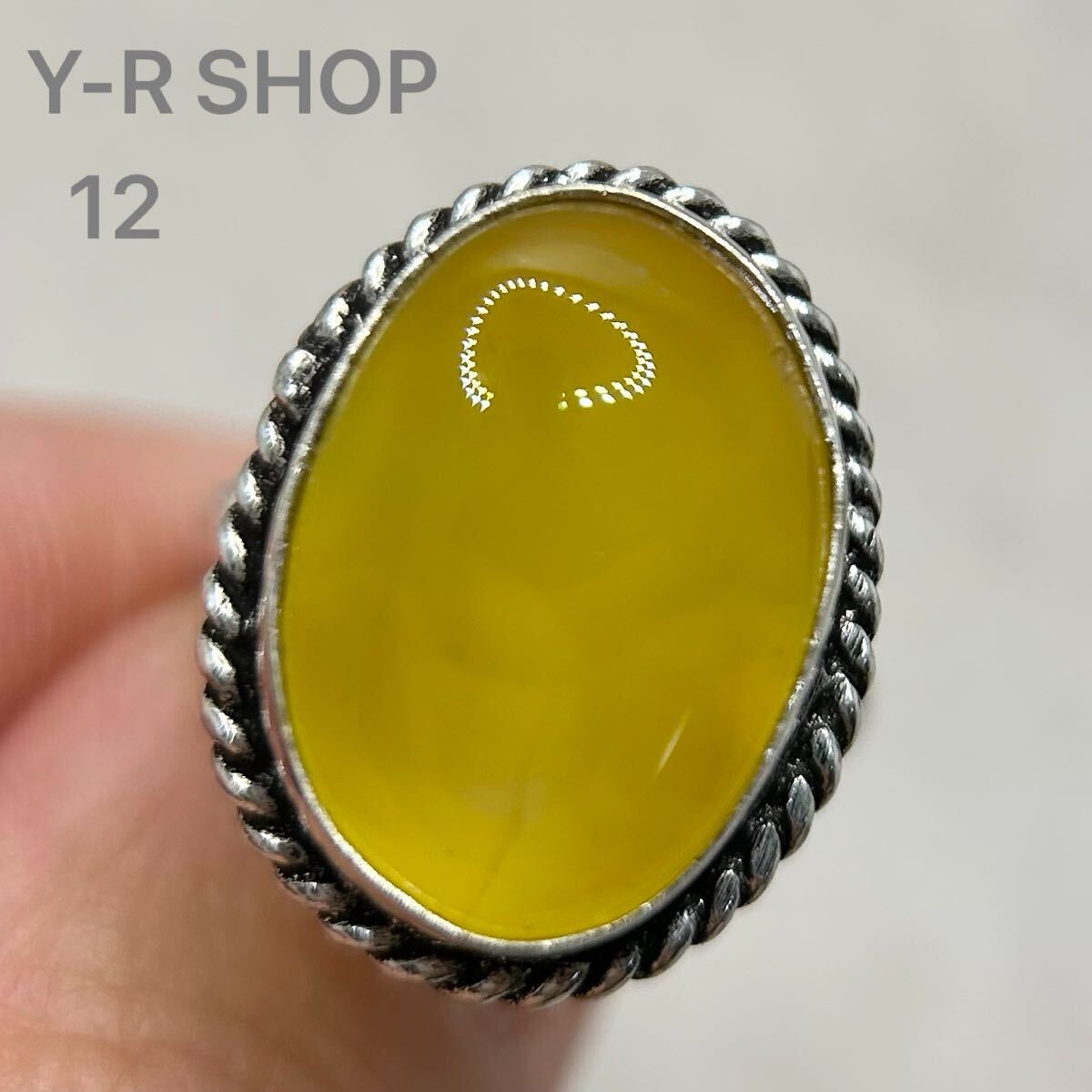 - 天然石★12号★艶々イエローカルセドニーのアンティーク調リング★レディース指輪シルバー 925刻印カラーストーンエスニック新品Y-RSHOP