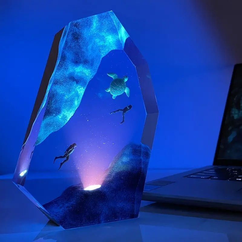 > ナイトスタンド ライト 照明 間接照明 テーブルスタンド ダイビング 海の中 潜水 インテリア オブジェ 装飾 置物 海 ウミガメ ダイバー