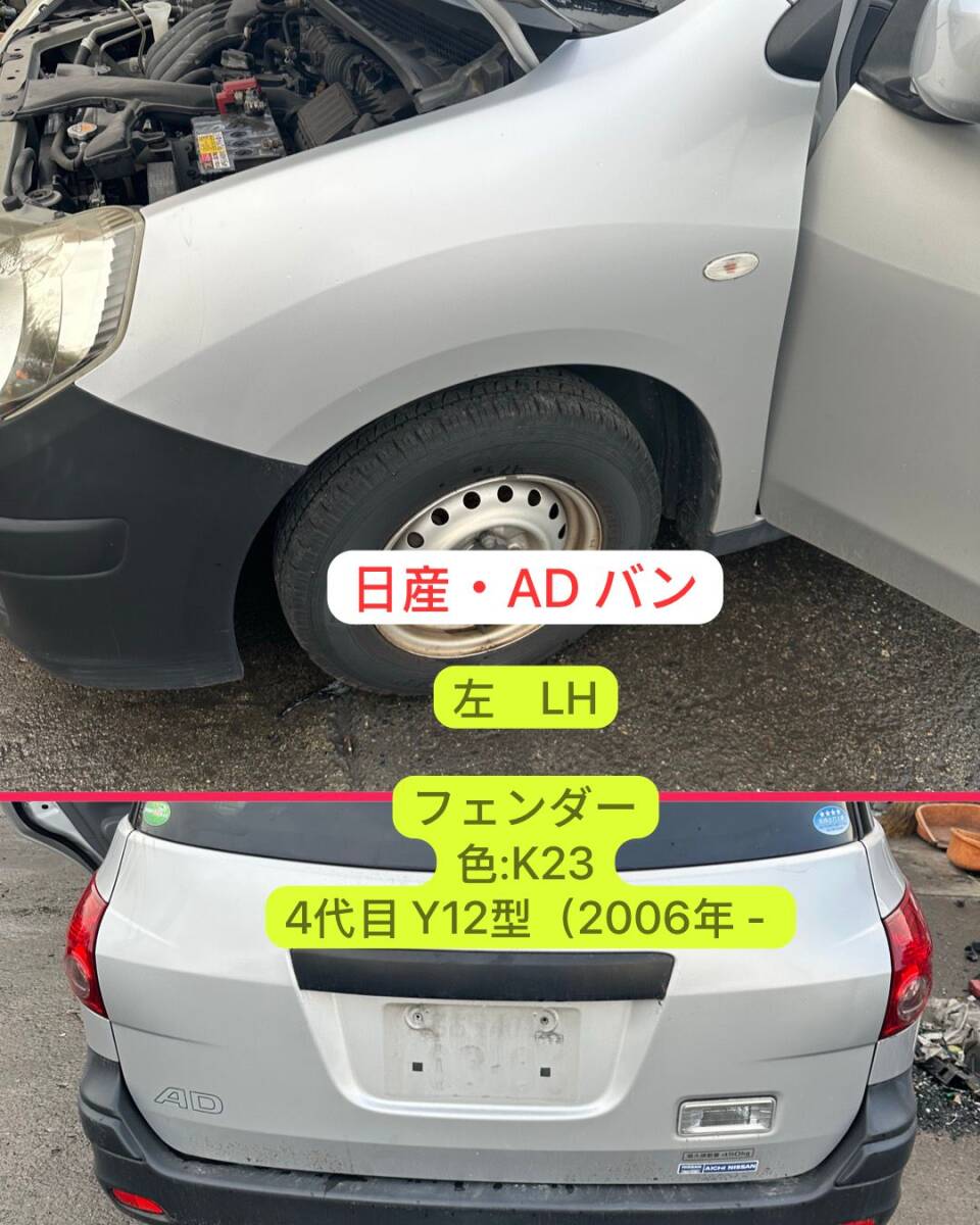 - ZT-668]純正 日産 ADバン VY12 LH 左 NISSAN フェンダー 色:K23 4代目 Y12型(2006年 - )