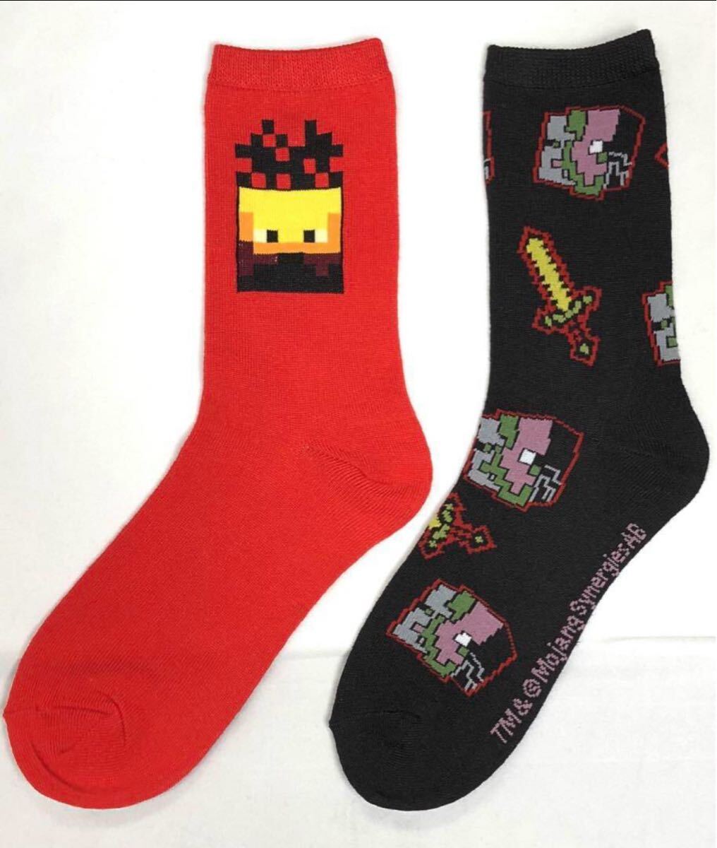 - 24-26cm Minecraft マイクラ マインクラフト ソックス 靴下 2足セット ブレイズ & ゾンビピッグマン 金の剣