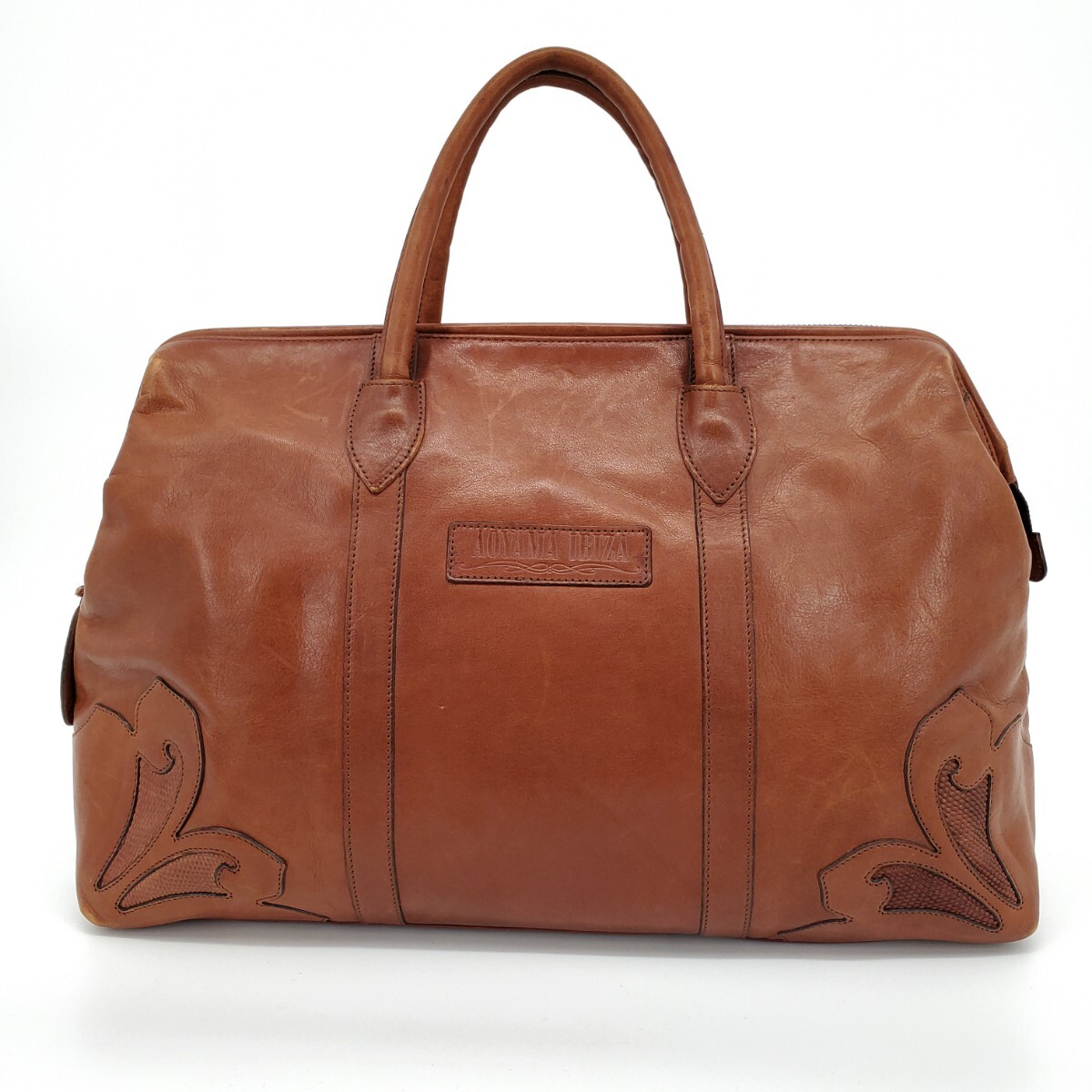 - /*b 【ハリのある質感】 アオヤマ イビサ AOYAMA IBIZA レザー 裏地花柄 ボストンバッグ ブリーフケース 手提げ カバン 茶 ブラウン