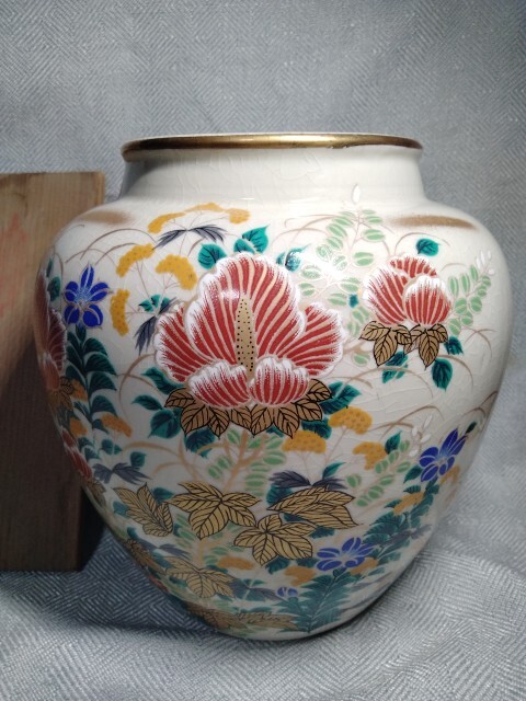 - 花瓶 九谷焼 九谷陶栄 18.5x11.5cm 置温
