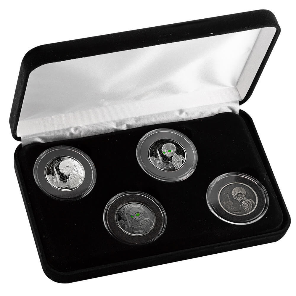 - [保証書・カプセル付き] 2021年 (新品) ガーナ「宇宙人・エイリアン」純銀 1/2 オンス 銀貨【4枚セット】