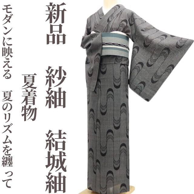 - tomihisa 新品 紗紬 夏着物 正絹 仕付け糸付”モダンに映える、夏のリズムを纏って”結城紬 5977