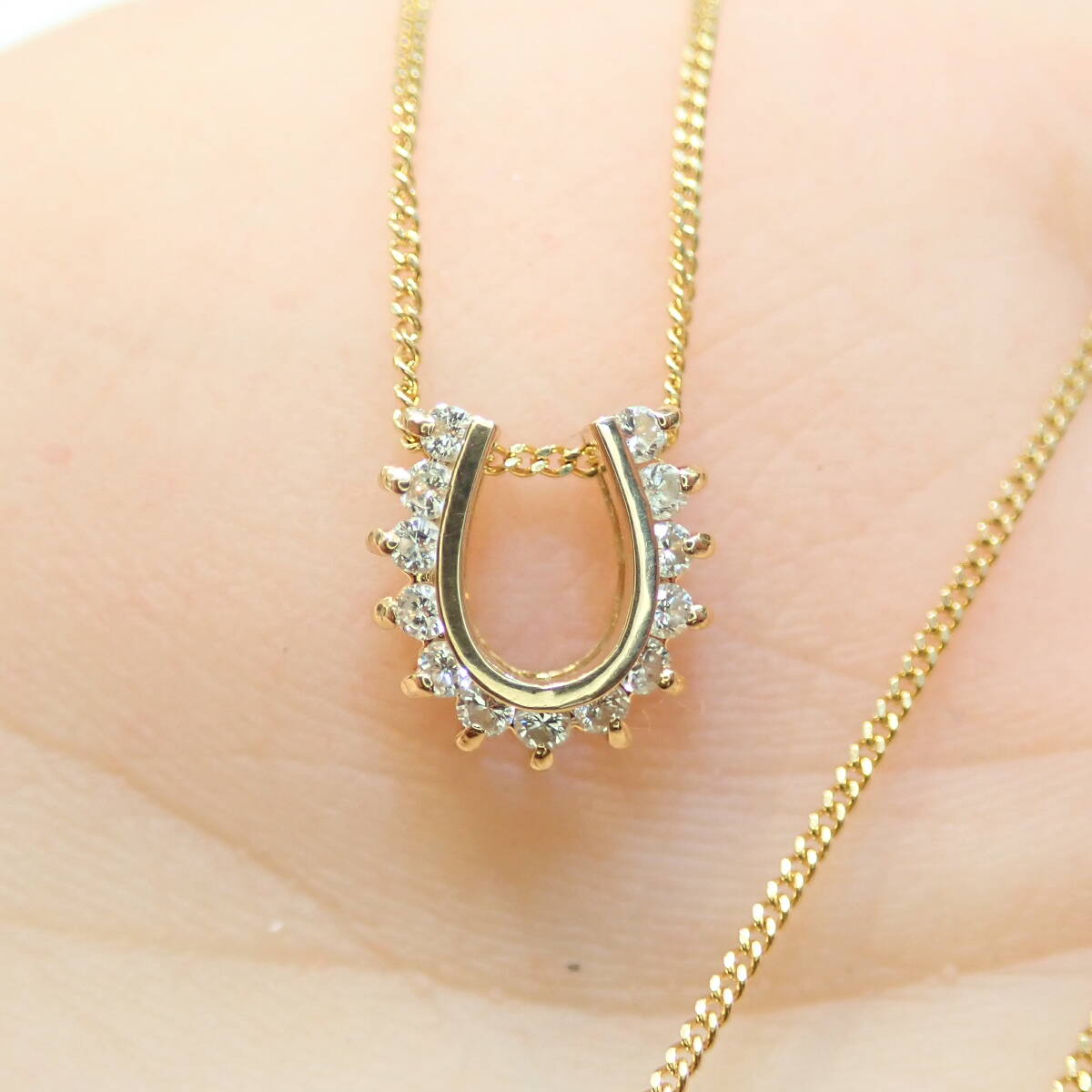 - ■K18馬蹄型ペンダントチェーンネックレス 0.23ct 2.8g 40.5cm■造幣局検定マーク(ホールマーク)750■中古磨き仕上げ■