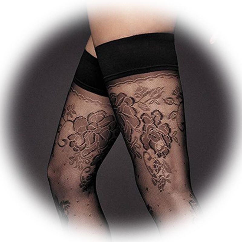 - VENEZIANA EU製 シリコンストッパー フローラルデザイン タイハイタイツ 20DEN