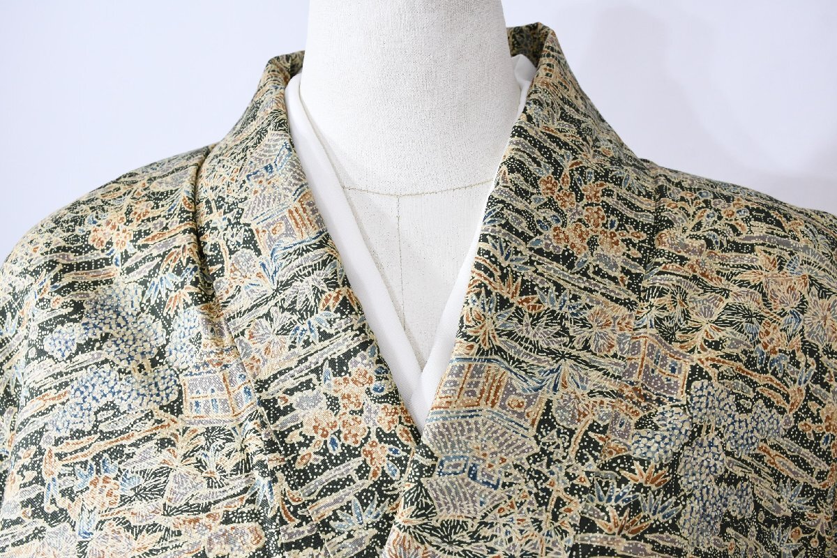> 紬 つむぎ 風景 家 渡来 身丈150cm 裄丈63cm ★着物 pb-3515 桜庭呉服店