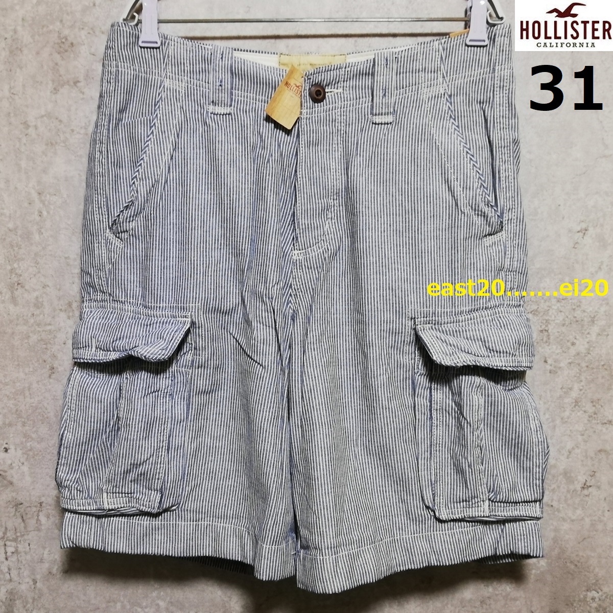 - 新品 HOLLISTER ホリスター ショート ハーフ カーゴ パンツ 31 ヒッコリー ストライプ 未使用 アメカジ アバクロ Y2K 00s 即決 送料無料