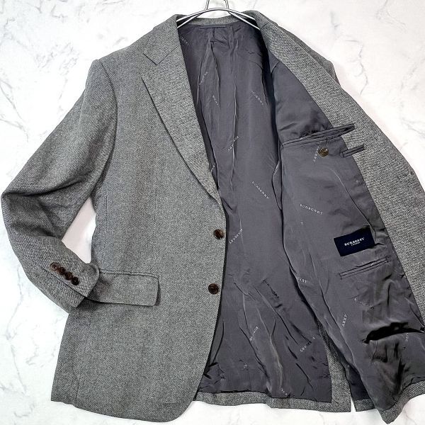 > 1スタ 極美品 カシミヤ100% バーバリーロンドン テーラードジャケット 2B 秋冬 鹿の子調 メンズ XL相当 グレー系 BURBERRY LONDON B1013