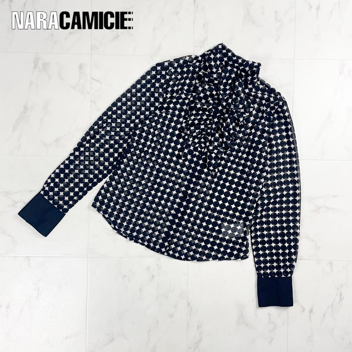 - 新品未使用タグ付 NARACAMICIE ナラカミーチェ ドット柄シアーフリルシャツ シースルー長袖ブラウス レディース 黒 ブラック サイズ3*CD155