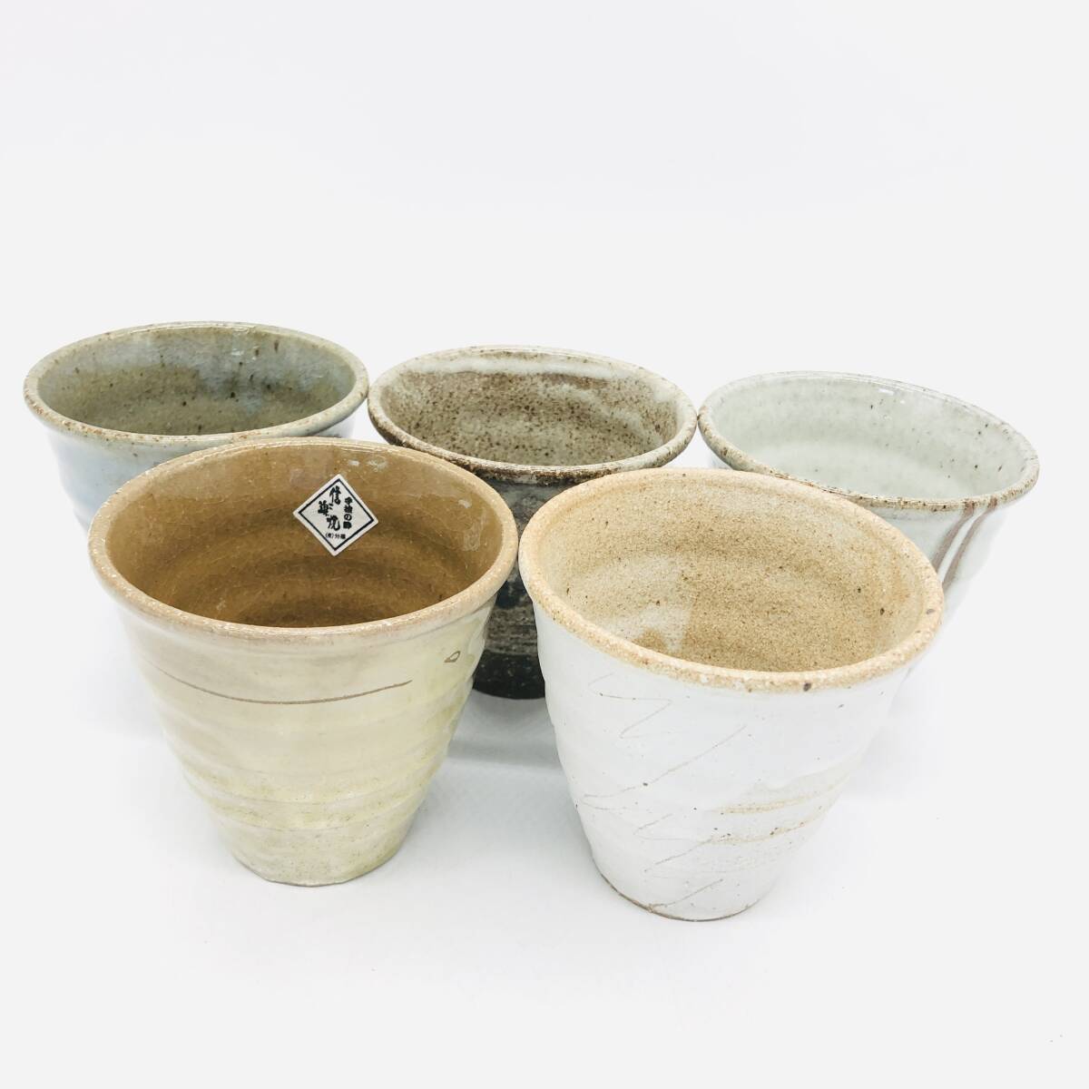 - 【保管品】【未使用品】信楽焼 フリーカップ 湯呑み 5客 セット 陶器 陶磁 湯のみ 食器 器 箱付 / io-5634-sw