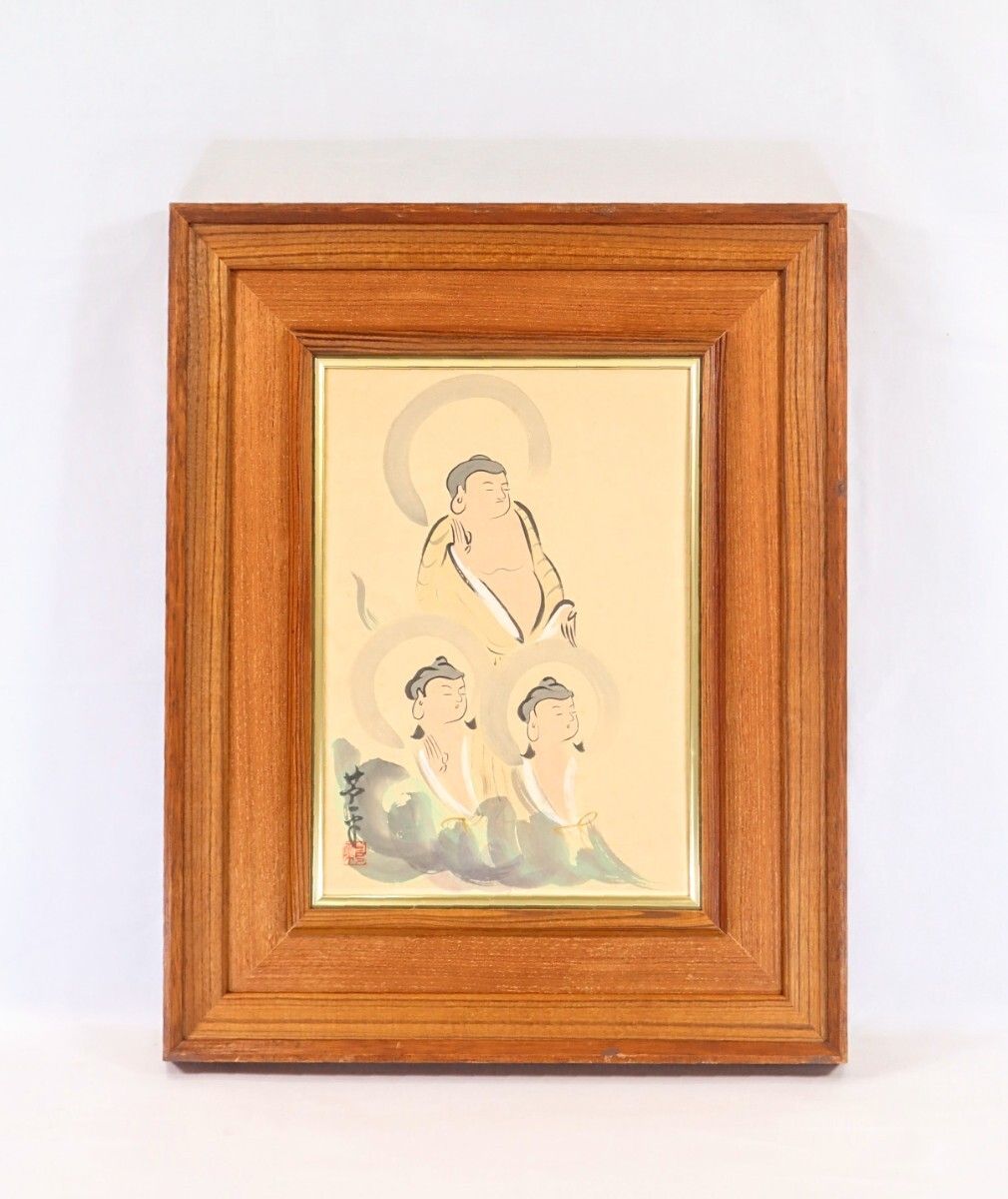 - 真作 槇岡芦平 墨彩「三仏」画寸 4号 京都府出身 大津絵作家 槇岡鬼佛 (芦舟)の実子 柔らかな筆致と淡い色彩の仏さま 槙岡芦平 10986