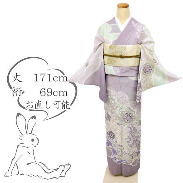 > 【訪問着】 新品 長尺 夏着物 『絽』 道長取り宝相華 紅藤色 正絹着物 HP5-2