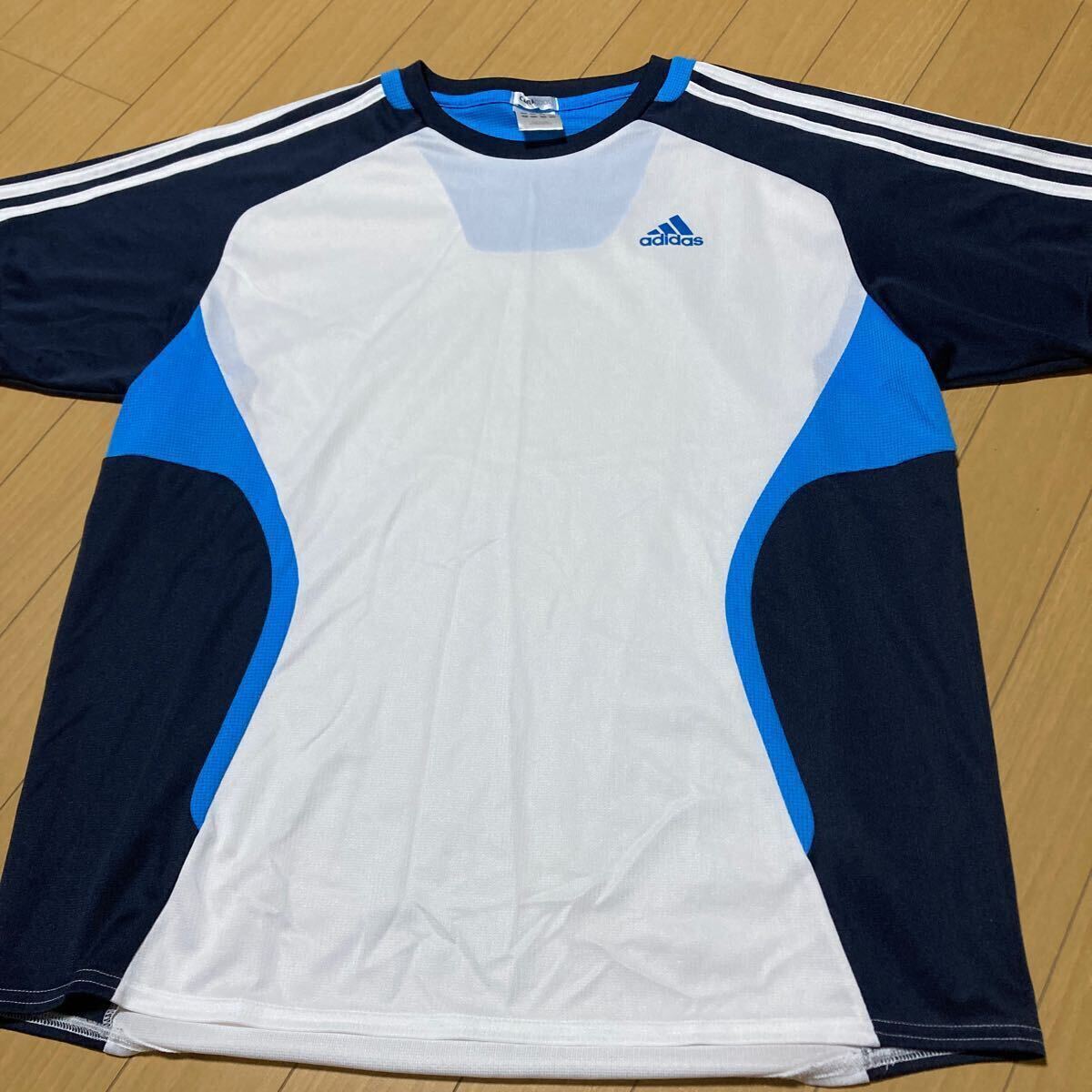- Tシャツ トレーニングシャツ adidas アディダス ホワイト 紺 水色 ブラック XO