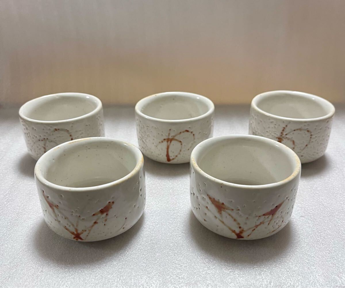- 未使用 新品 美濃焼 康元窯 佐藤康元 志野 湯呑 5客 絵志野 お洒落 作家物 裏印 白