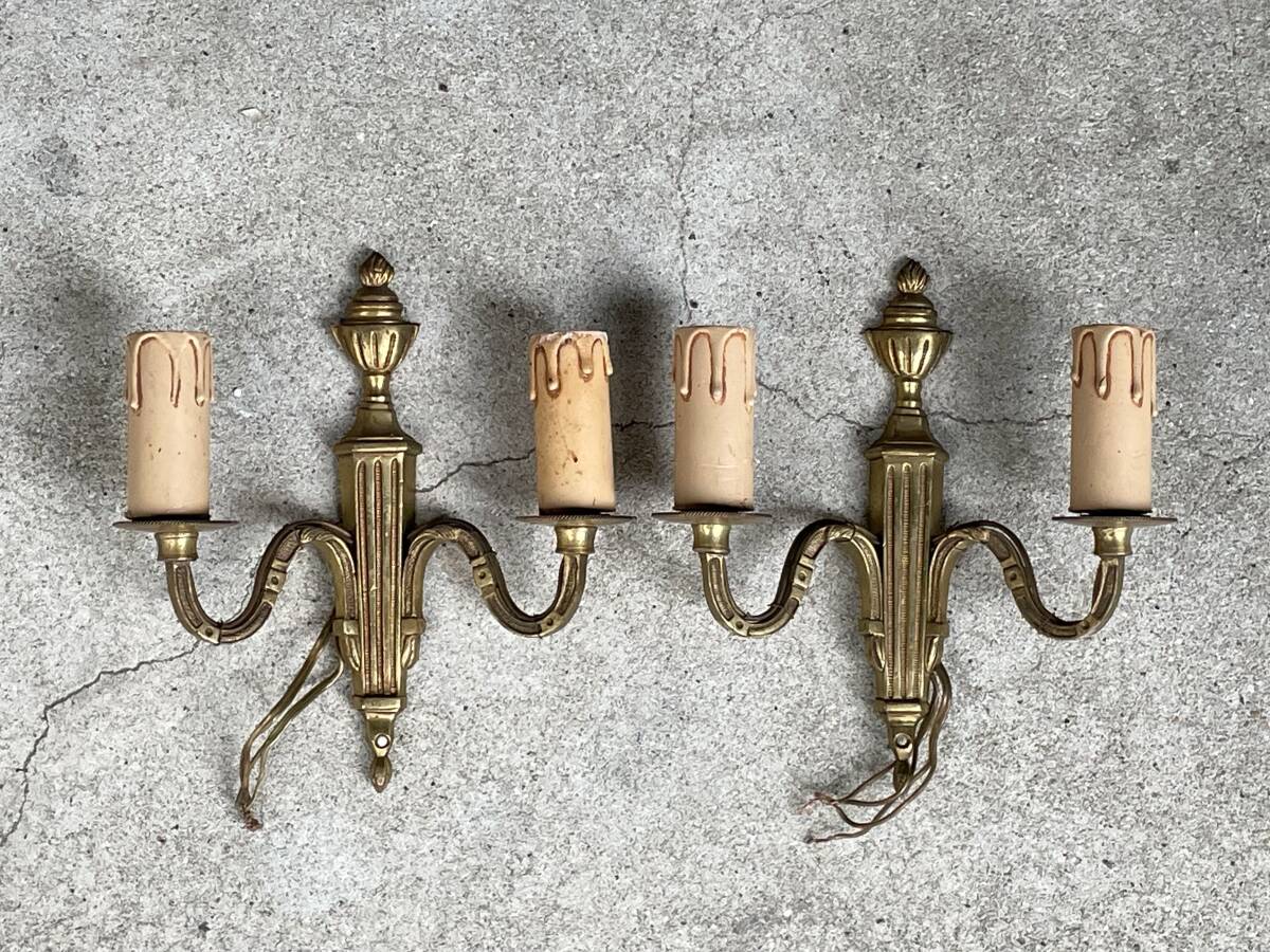 - 22. 2個セット!フランスアンティーク ランプ ブラケット 2灯 キャンドル 照明 ライト ウォール 蚤の市 店舗 什器 カフェ 美容室
