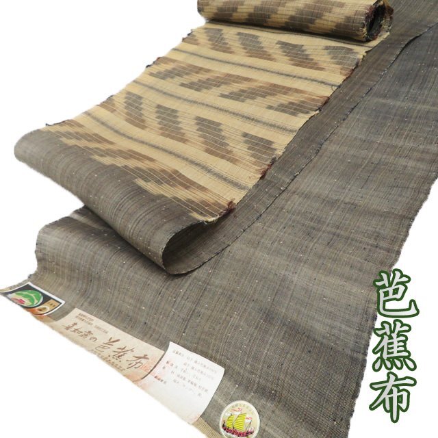 - 特選 夏物 夏帯 重要無形文化財 芭蕉布 反物 帯 未仕立て 黒色 茶系色 きもの北條 A1210-2