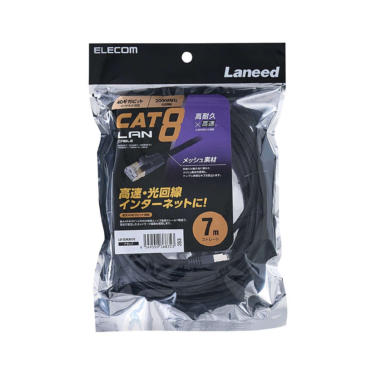 - Cat8準拠ツメ折れ防止LANケーブル メッシュタイプ 7.0m ノイズ干渉にも強く、高速で安定したネットワーク環境を実現: LD-OCM/BK70