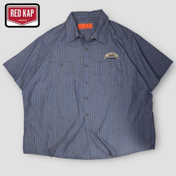 > ★超BIGサイズ★HIGH NOON Saloonロゴ刺繍★conner stone★半袖ワークシャツ size3XL ストライプ柄 スナップボタン 古着 洗濯済み 2269