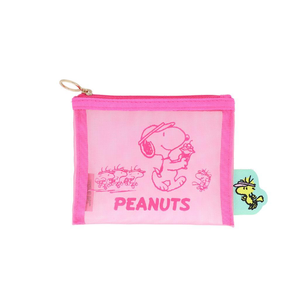 - スヌーピー 平ポーチ メッシュミニポーチ ピンク ピーナッツ サンスター文具 小物入れ キャラクター グッズ