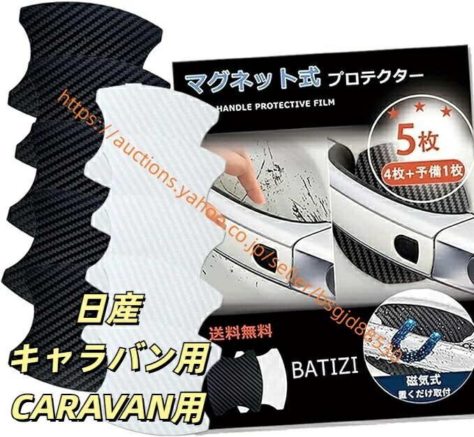 > マグネット式 日産 キャラバン CARAVAN ドアハンドルドアハンドル カーボン 4枚+予備1枚入り ct-caravan