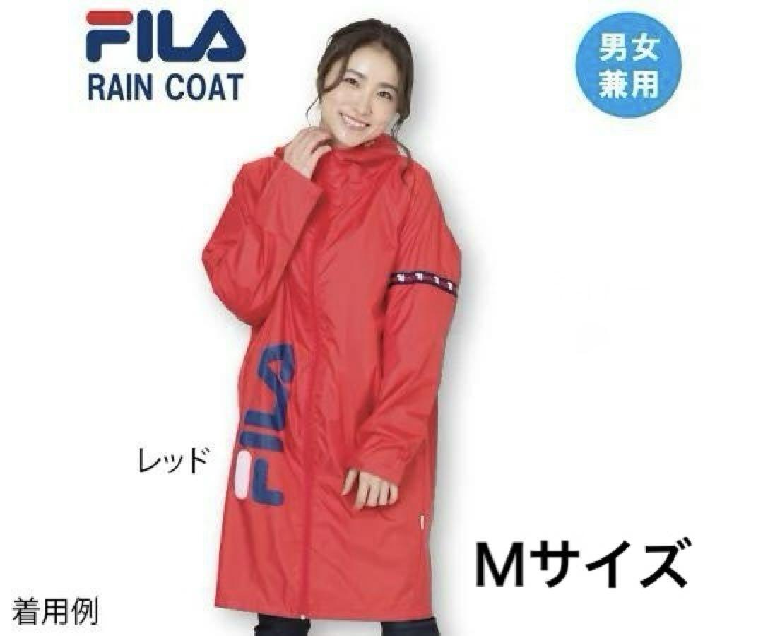 - 新品64257 FILAフィラ Mサイズ レインコート 男女兼用 レッド雨具合羽 赤 ユニセックス 撥水