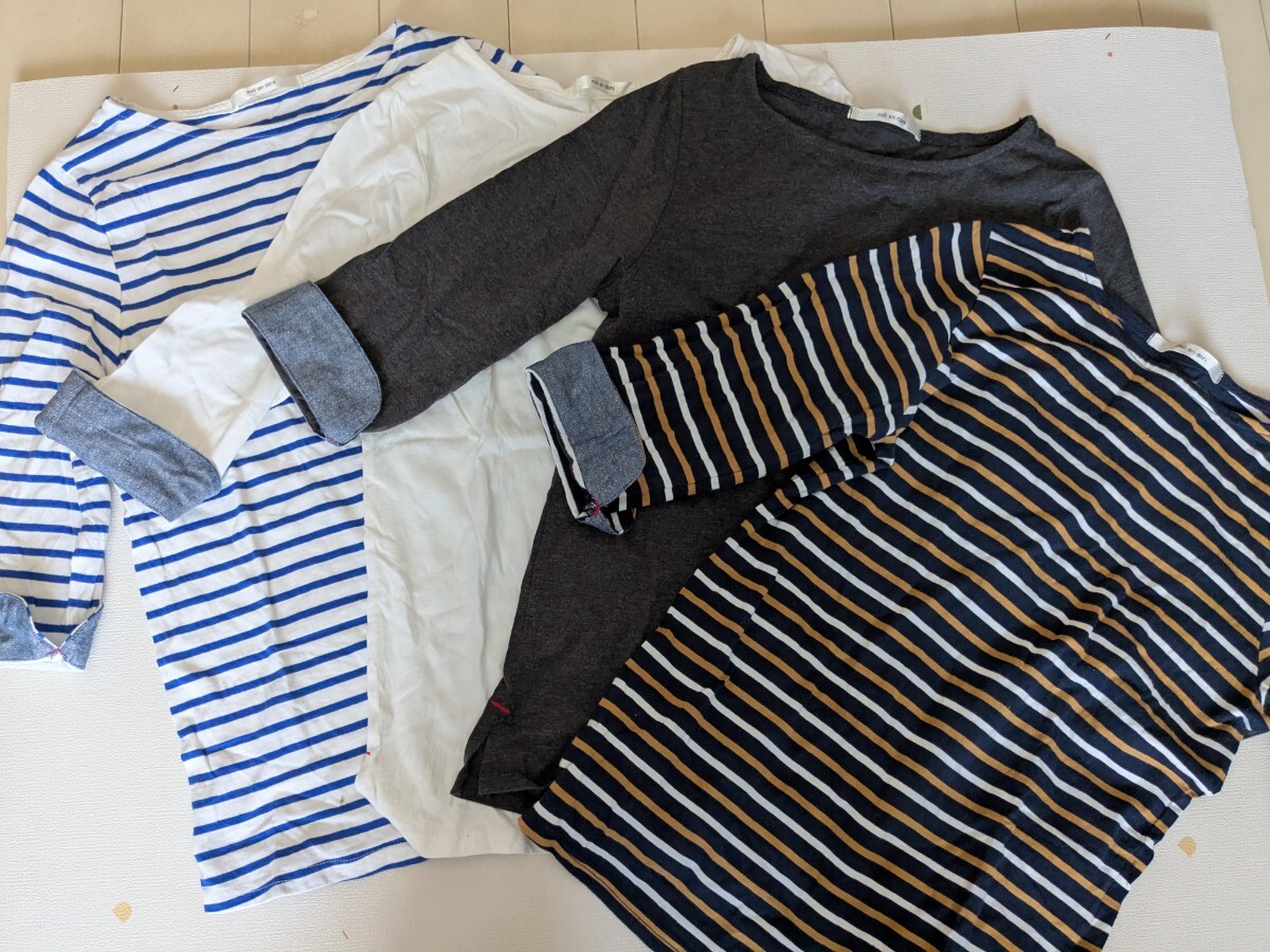 - ミリアンデニ 七分袖トップス Tシャツ ボーダー 白 グレー