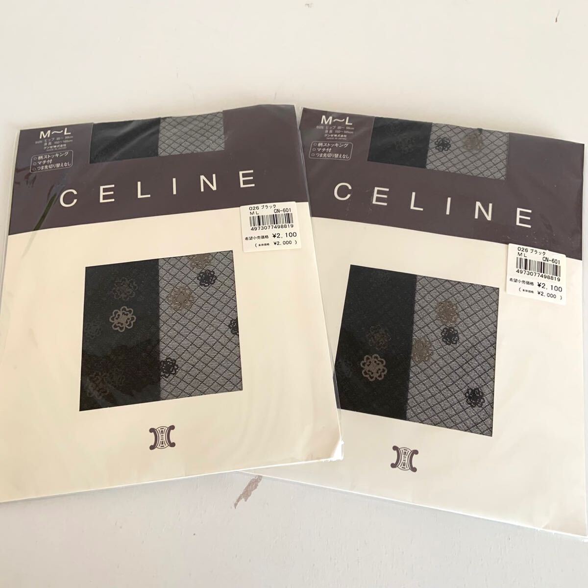 - 未使用 CELINE セリーヌ 柄物 パンティストッキング 2点セット マチ付 サイズM〜L ブラック系 花柄 ストッキング パンスト インナー グンゼ