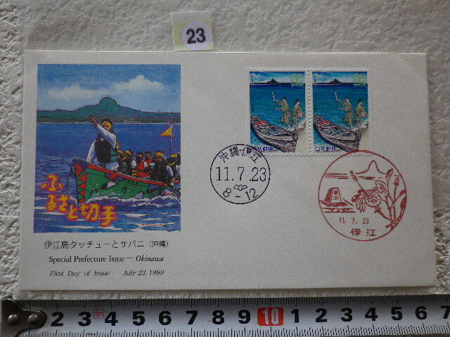 - FDC ふるさと切手 伊江島タッチューとサバニ・沖縄 2貼2消 解説書有●23●同梱大歓迎