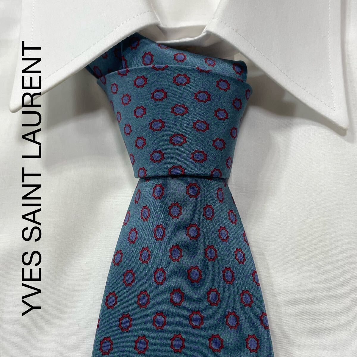 - YVES SAINT LAURENT イヴサンローラン パターン柄 シルク ネクタイ イタリア製 ブルーグリーン TG2498