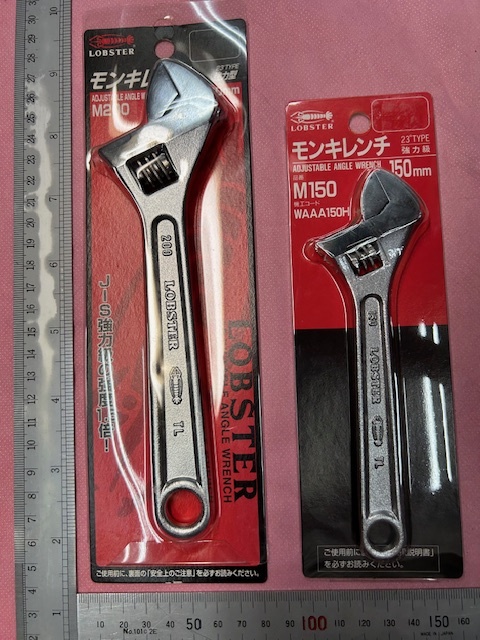 - 海老印 モンキーレンチ 150㎜×1丁、200㎜×1丁 ロブスター製 2種、2丁 送料無料