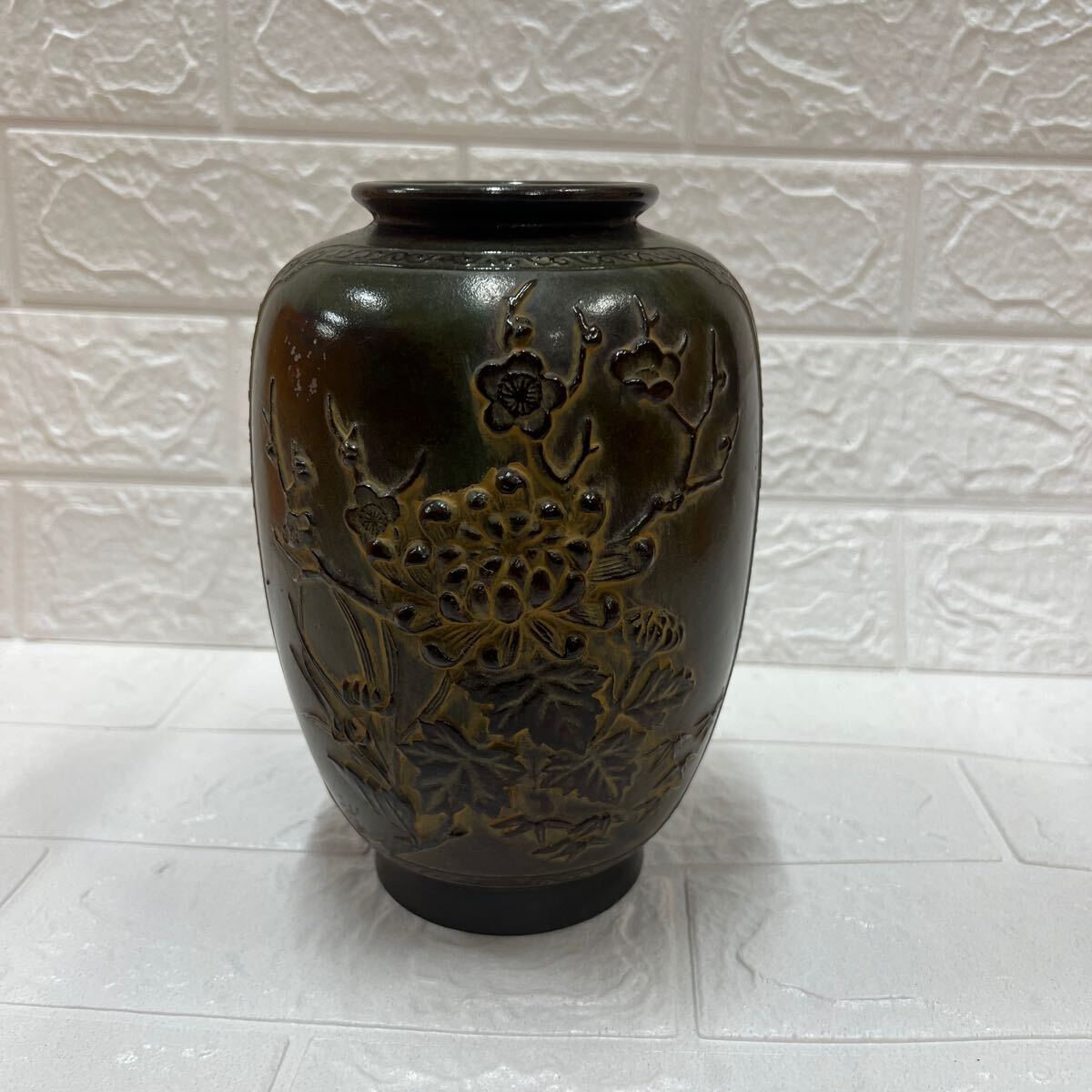 - △奥A2△ 花瓶 唐銅 銅器 雲紋 水盤 砂鉢 花器 インテリア 花入 四君子? コレクション
