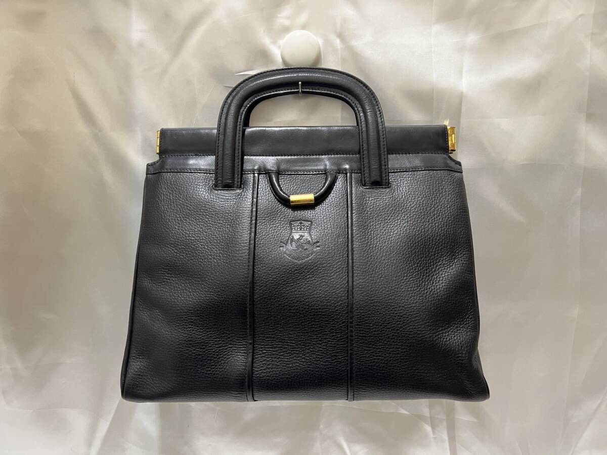 - B) ABRANDI バネ口 トートバッグ レザー 革 ブラック 黒 【中古美品】D119i