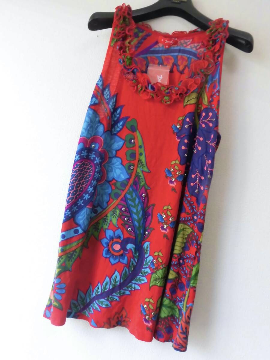 - ●新品タグ付き/Derhy/赤系スタッズビーズ装飾/タンクトップ/ロング丈/サイズM~/ストレッチ強