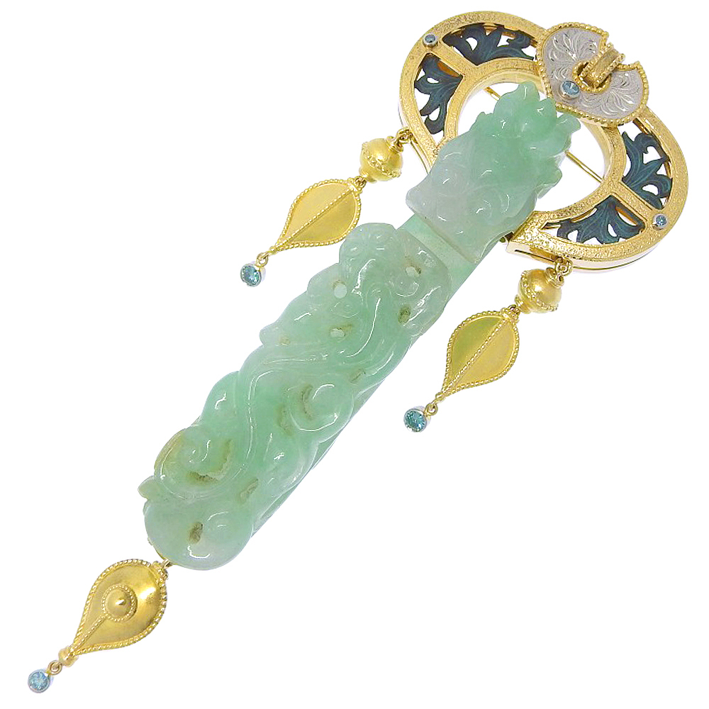 - NOBUKO ISHIKAWA 石川暢子 S0.33/D0.40 ブローチ K18YG×ヒスイ×Pt900プラチナ 約75.7g レディース【I130425038】中古
